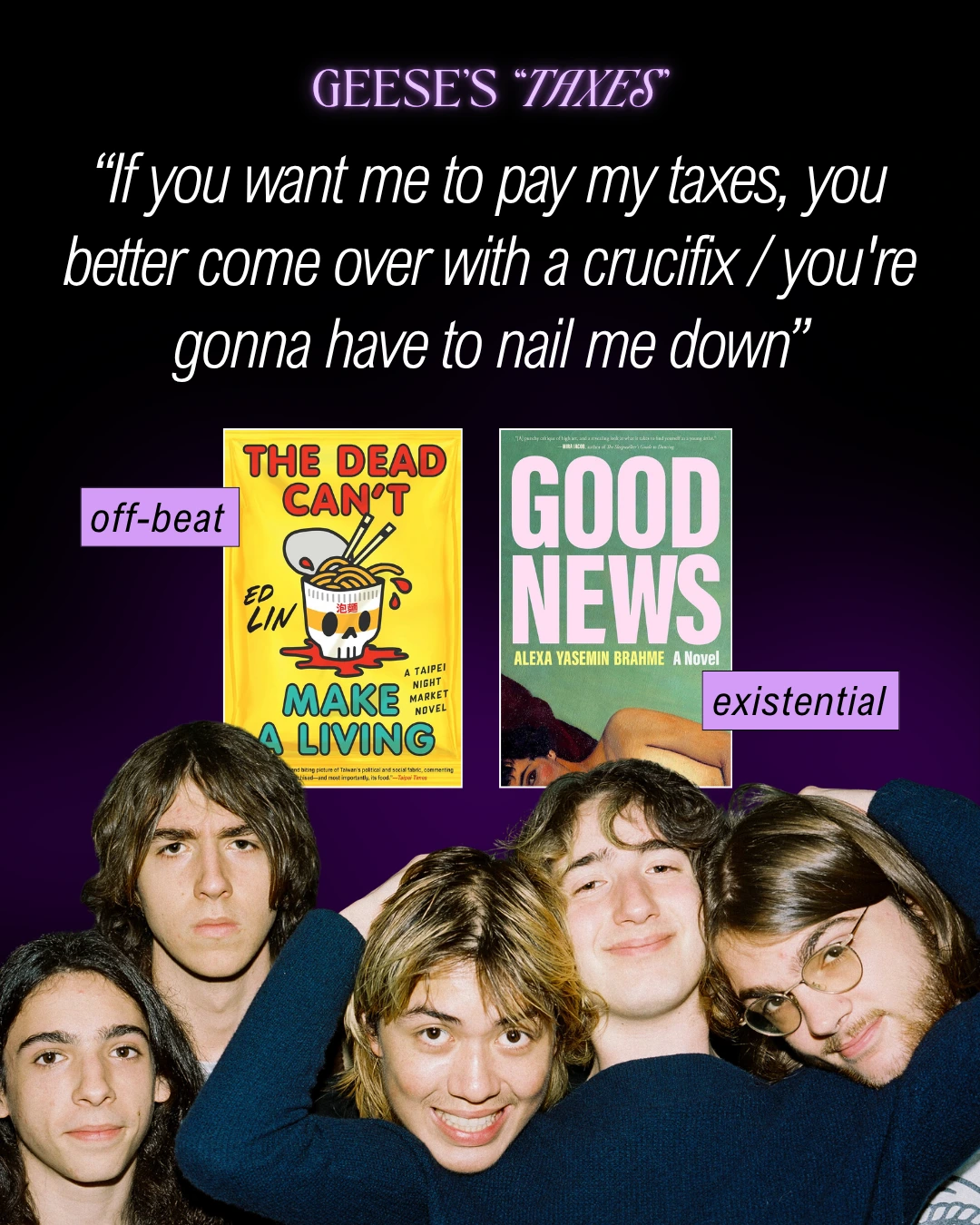 For books like “Taxes” by Geese, check out: