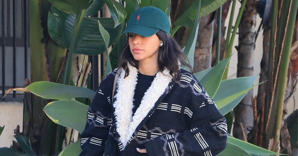 One style icon who has recently been sporting the shoe trend is Brazilian actress Bruna Marquezine. While heading to a Pilates class in L.A., she was spotted wearing a chic activewear ensemble consisting of a black top, black leggings, and a shearling-lined printed coat. For accessories, she opted for a Ralph Lauren baseball cap, the Birkenstock Boston Clogs in taupe, and slouchy gray socks to keep her feet warm.