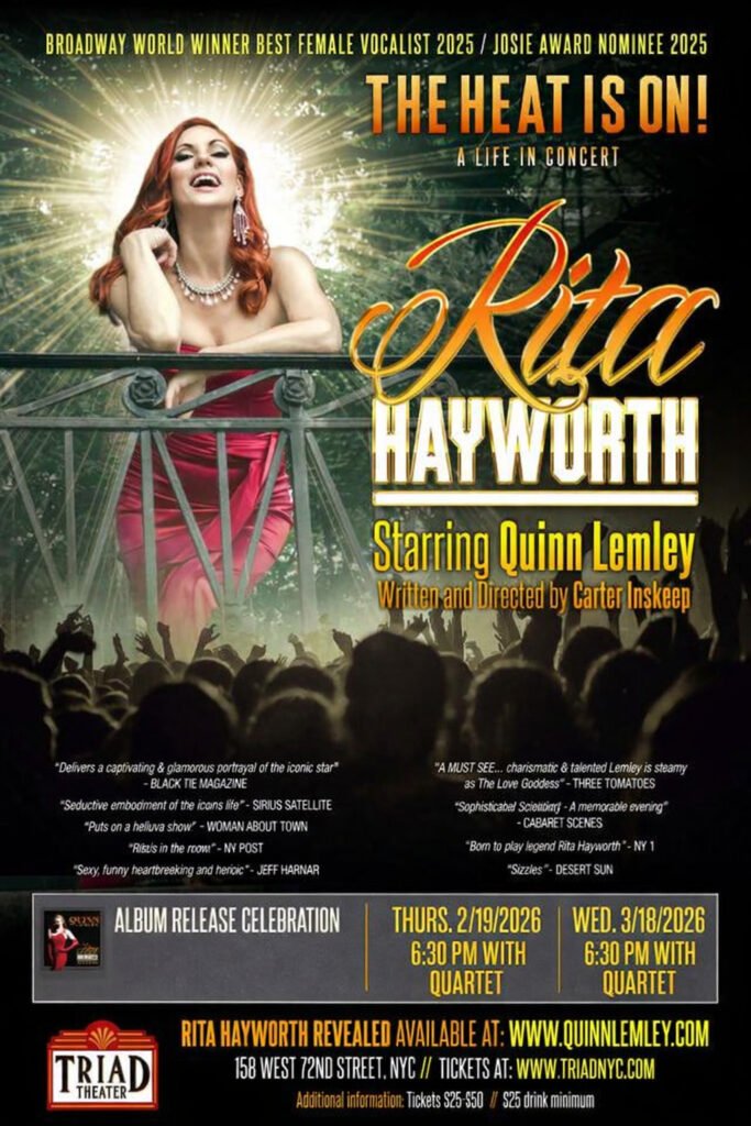 Award-winning vocalist, actress, and stage sensation Quinn Lemley is bringing her signature glamour, powerhouse vocals, and irresistible storytelling back to Triad Theater for two special performances on February 19th and March 18th, 2026.