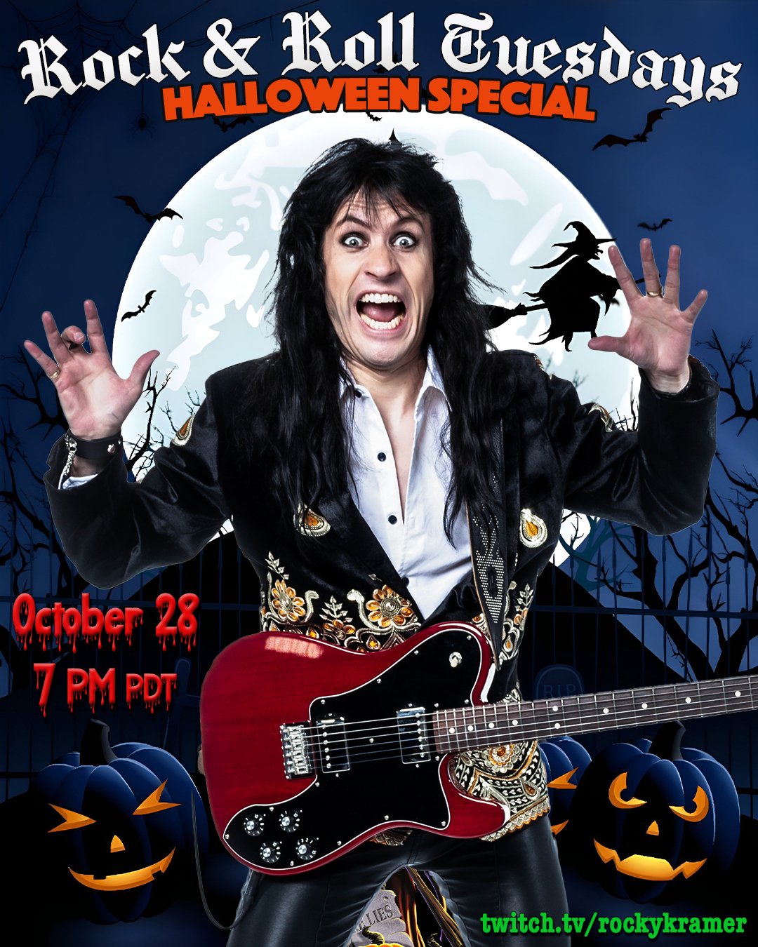 Watch Rocky Kramer’s Rock & Roll Tuesdays “Halloween Special” on October 28th, 2025, at 7 PM PT on Twitch here: